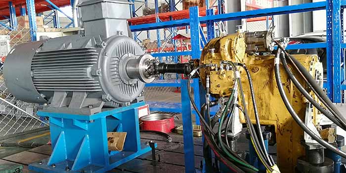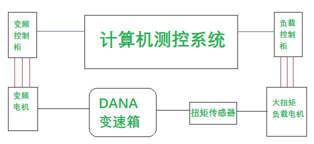 1、變頻電機連接變速箱輸入端 2、變速箱輸出端連接扭矩傳感器 3、扭矩傳感器連接大扭矩負載電機 4、計算機測控系統采集溫度、壓力、流量、轉速、扭矩信號,控制變頻電機轉速值,控制負載電機扭值